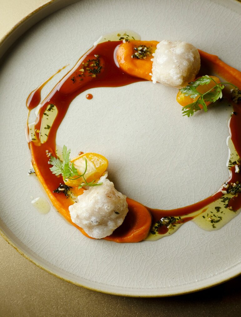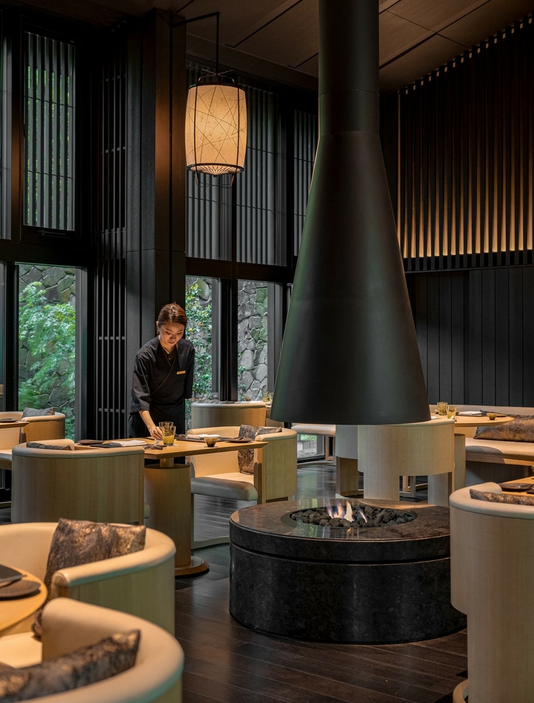 The Living Pavilion is an all-day dining restaurant within Aman Kyoto, serving contemporary international cuisine shaped by seasonal ingredients. The menu is broader than the resort’s kaiseki offering, balancing Western and Japanese influences in a restrained, design-conscious setting. Floor-to-ceiling windows open onto Aman Kyoto’s garden landscape, keeping the surrounding forest a constant presence throughout the meal. Typically used for breakfast, lunch, and informal dinners, The Living Pavilion serves as the resort’s most flexible dining space, prioritizing comfort, pacing, and quiet consistency over ceremony.