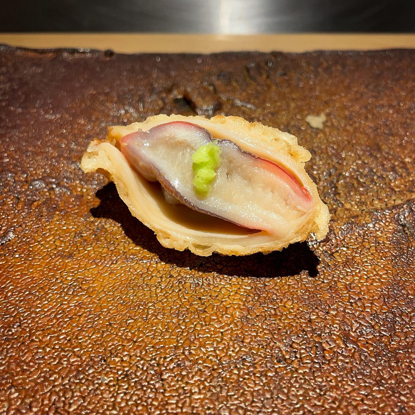 The batter arrives light and airy, crisp without heaviness. Come hungry. The 20-course omakase builds steadily, each piece arriving hot and precisely timed. Shrimp tempura stands out, whether finished simply with yuzu and salt or dipped into the house tentsuyu sauce. Every course feels deliberate and balanced.