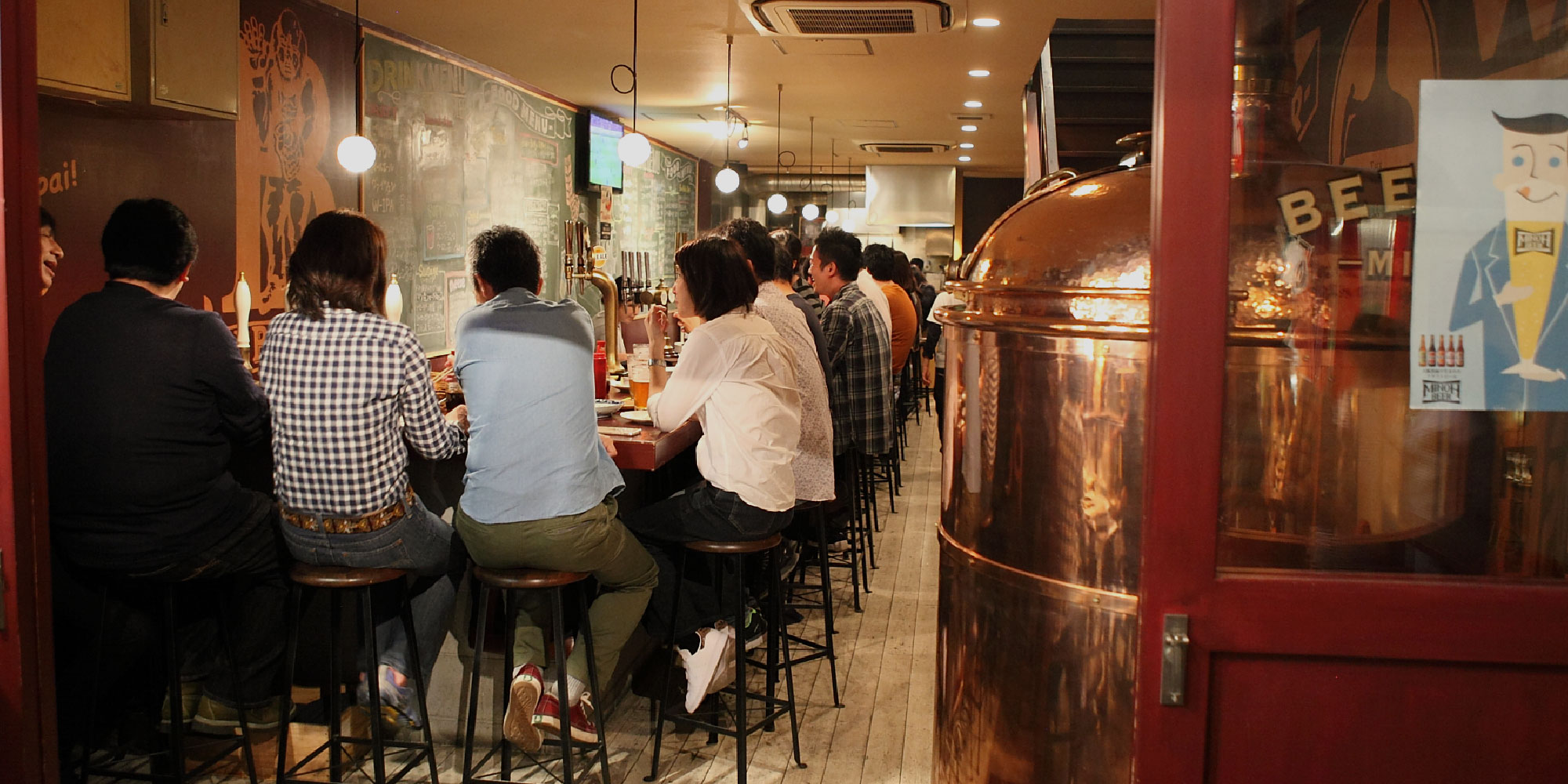 A laid-back craft beer bar in Tenma pouring fresh Minoh Beer alongside global pub bites and Osaka energy.