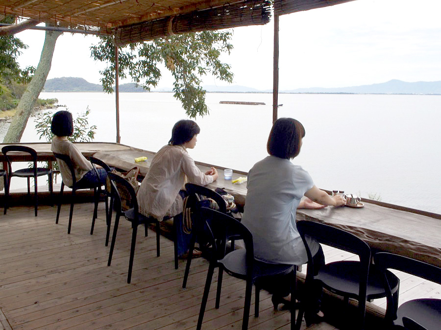 A glass-walled café perched over the still waters of Lake Biwa—Chalet Mizugahama offers quiet clarity with every cup.