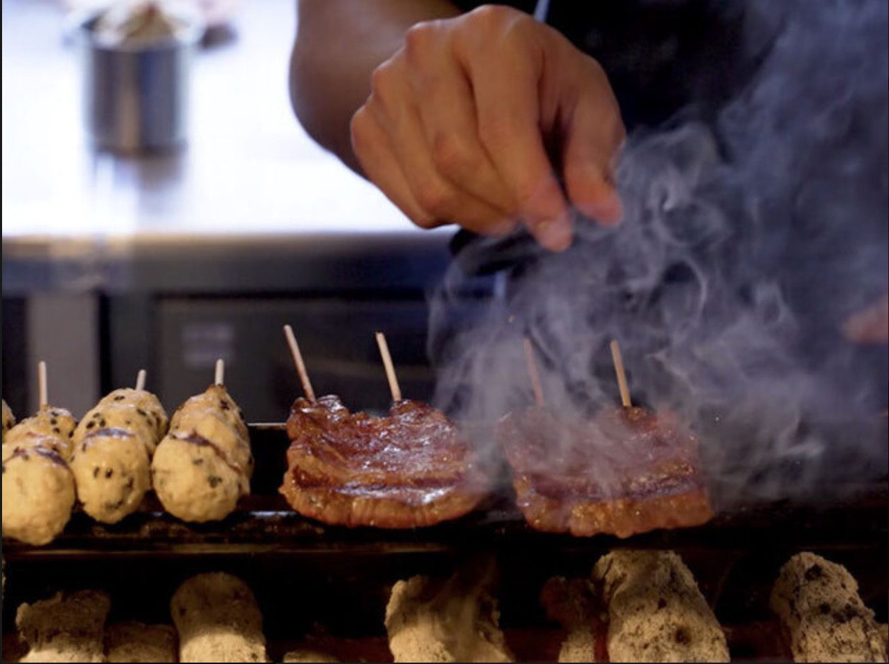A lively yakitori izakaya near Fushimi Station, serving charcoal-grilled skewers, offal, and casual drinks in a retro-style setting.