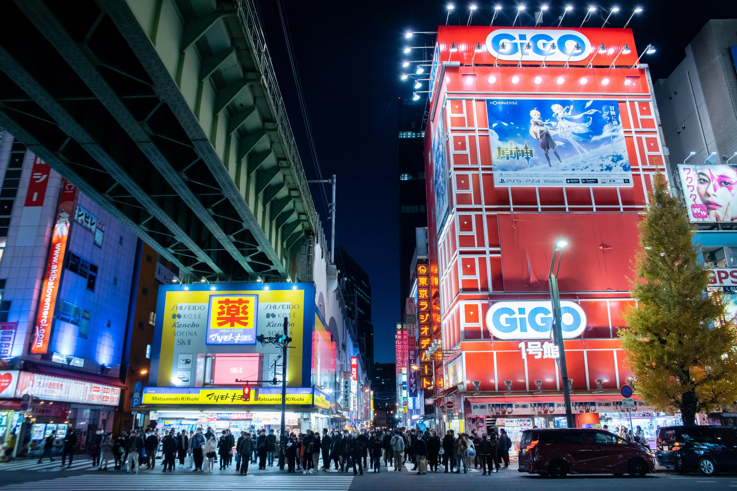 - “Akihabara Night Lights” — Photo by TarkusAB, CC BY-SA 4.0, via Wikimedia Commons.