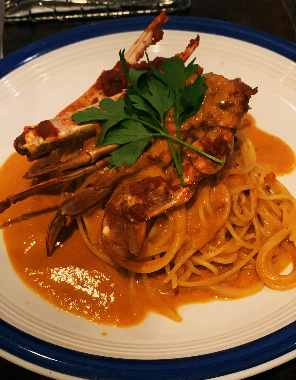 He runs the place solo—octopus-arming every task. You toast your own bread to give him a break. Not a problem when the taste is this good. The bread acts like a wheat towel—you’ll want to use it to wipe up every last drip and morsel of cream. Fiona Apple plays overhead. Noodles like silk soak in a cream so rich it feels vaguely illegal. A cracked crab sits on top—snap it open, suck in the meat, and let the flavor deepen. Etiquette can wait. This is finger-licking good.