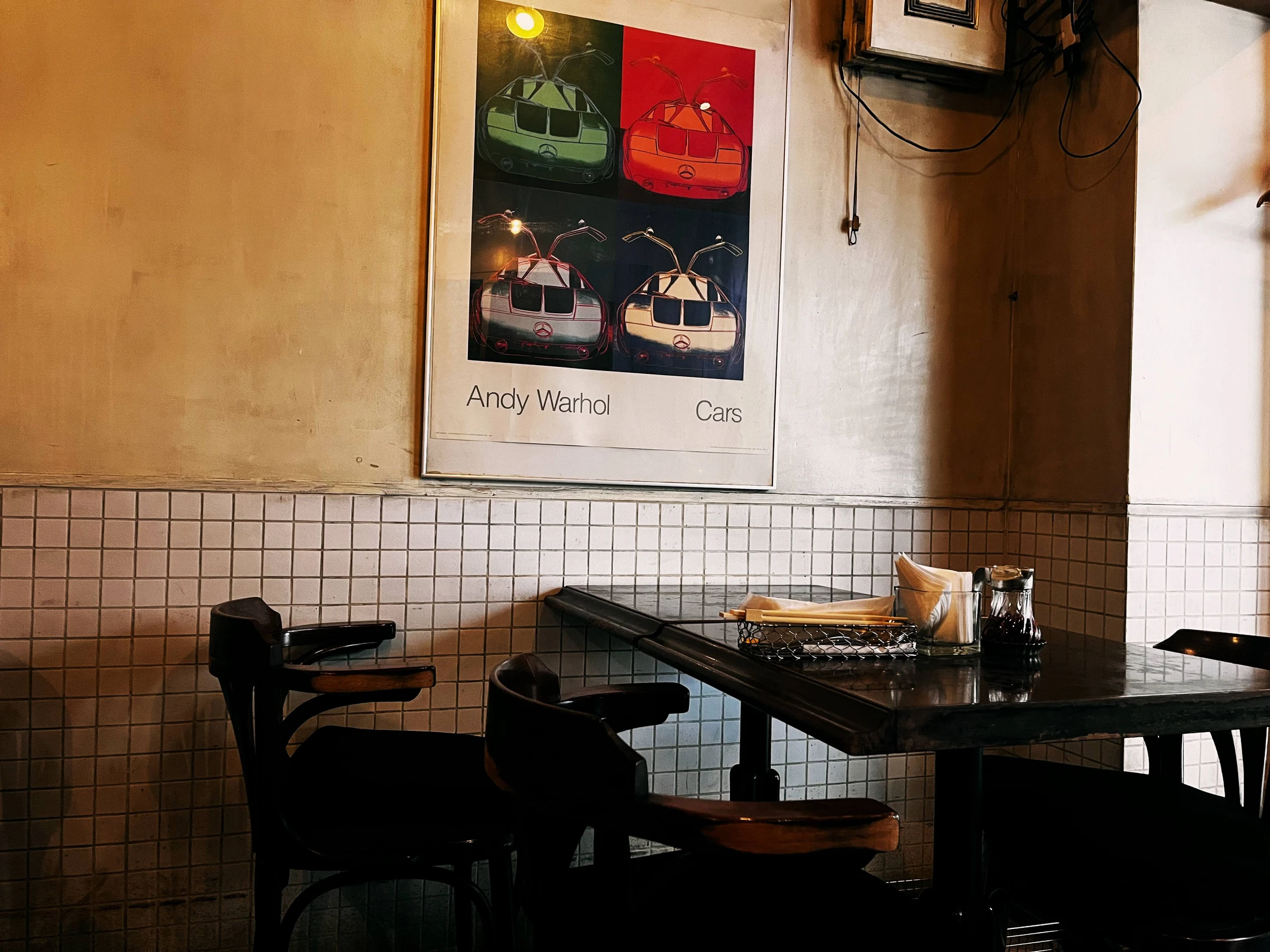 The set includes salad, toast-you-make-yourself, and coffee. Sit with it. Books in plastic sleeves hang along the wall—an unspoken invitation to linger. It’s the kind of place where you can write, stare, or simply let time pass. No rush. No performance. Just good food and space to breathe.